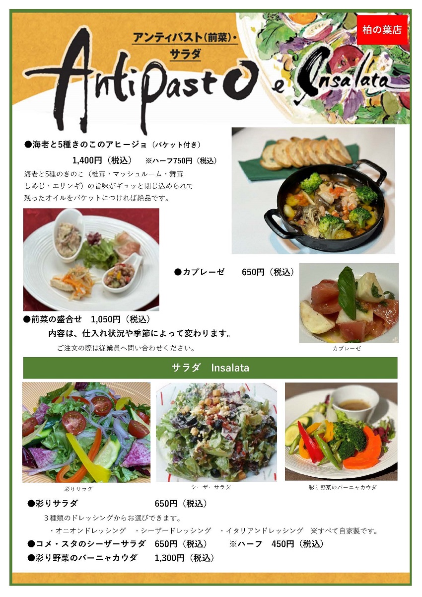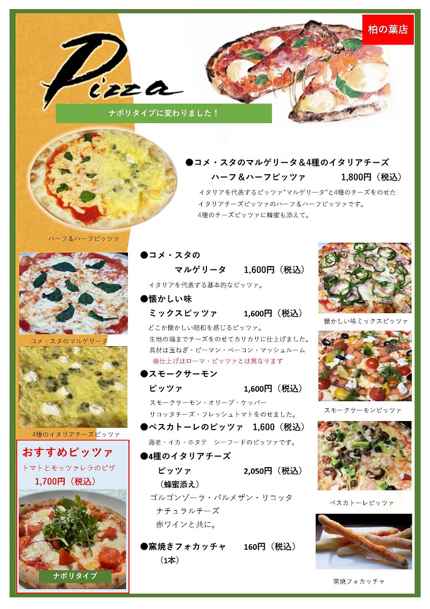 レストラン コメ・スタでは、茹で上げパスタ、薪窯焼きピッツァから前菜、お肉の料理まで、豊富に取り揃えています。
